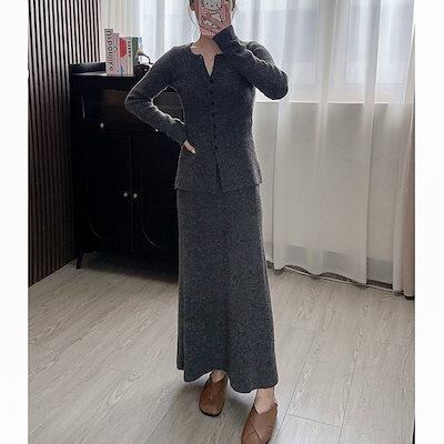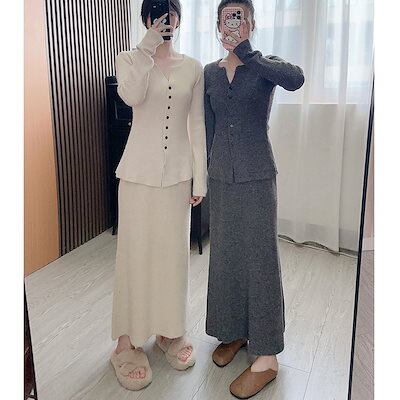 【2枚購入で 2oo円OFF!】秋冬 新作 シンプル 気質 レディースセットアップ Vネック 百掛け 上下セット セーター ニットスカート セットアップ ウエスト引き締め | KAGEYAMA-SECOND
