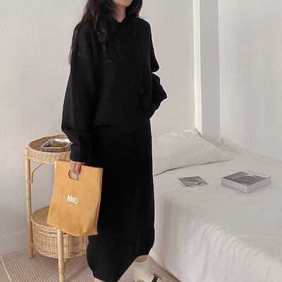 【2枚購入で 2oo円OFF!】秋冬 新作 シンプル 気質 レディースセットアップ フード付き 百掛け アウター 二点セット 上下セット セーター ニットスカート セットアップ | KAGEYAMA-SECOND