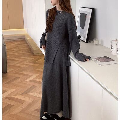 【2枚購入で 2oo円OFF!】秋冬 新作 シンプル 気質 レディースセットアップ ニット アウター 二点セット 上下セット セーター ニットスカート セットアップ | KAGEYAMA-SECOND