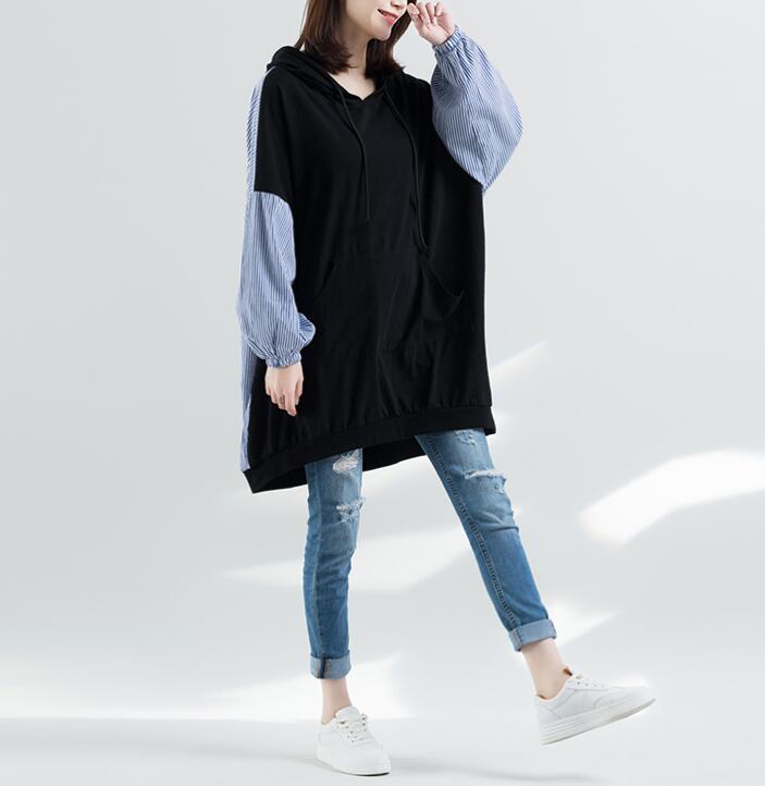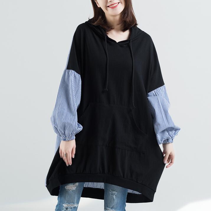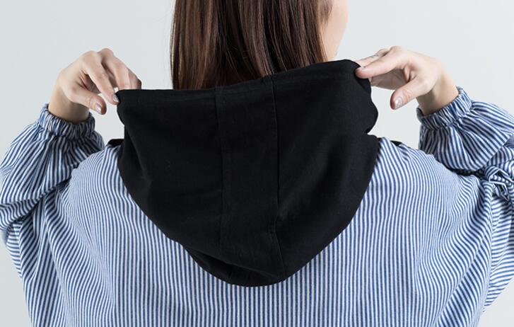 パーカートレーナースウェット切り替えフードストライプボリュームシャツレディース長袖