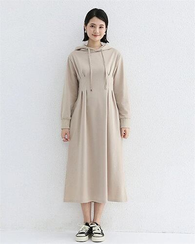 ワンピース レディース 秋 春 長袖パーカーワンピース 薄手フレア Aライン カシュクール オフィス 通勤 ストレッチ 伸縮性 ロング丈 ポケット付き ウエストタック ウエストゴム ゴム 20代 3 | KAGEYAMA-SECOND