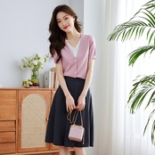 初回送料無料 トップス Vネックニットカジュアル半袖上着 レーディスファション商品 人気上着