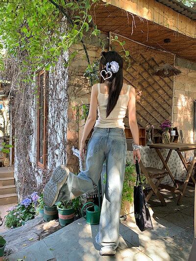2024春夏パンツ デニム ジーンズ レインボー 虹色 ワイド ストレート ハイウエスト 脚長効果 美脚効果 細見え 春 カジュアル おしゃれ かわいい 韓国ファッション レディース お出かけ | KAGEYAMA-SECOND