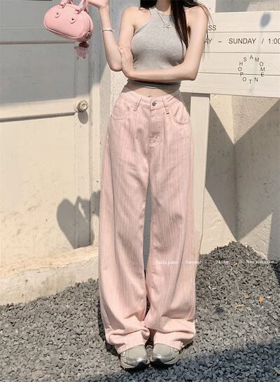 2024春夏パンツ デニム ジーンズ ロング丈 ワイド ストレート ハイウエスト 美脚効果 脚長効果 細見え 夏 白 黒 青 韓国ファッション レディース かわいい おしゃれ カジュアル お出かけ | KAGEYAMA-SECOND