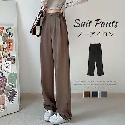 春新色 追加 ワイドパンツ レディース ボトムス パンツ きれいめ ワイド ロング 長ズボン ロング丈 ストレッチ ハイウェストパンツ ゆったり ポケット付き 美脚パンツ スーツパンツ 無地 秋冬 春 | KAGEYAMA-SECOND