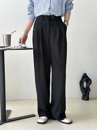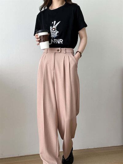 ワイドパンツ レディース ワイド ボトムス パンツ タックパンツ 無地 秋 冬 春 シンプル ガウチョ ハイウエスト スラックス ロング ズボン スーツ オフィス カジュアル ワイド タック ゆったり | KAGEYAMA-SECOND