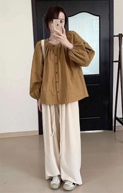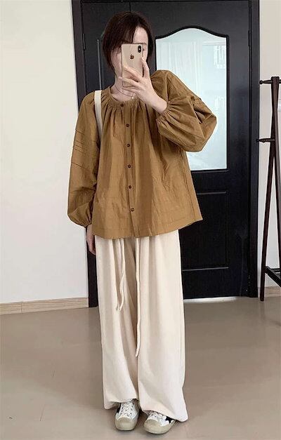 ニットパンツ ボトムス ゆったり ストレートパンツ ズボン コットン レディース ロング丈 春 秋 冬 ギャザー ウエストゴム ロングパンツ ワイドパンツ 無地 シンプル 秋冬 暖かい ポケット付 体 | KAGEYAMA-SECOND