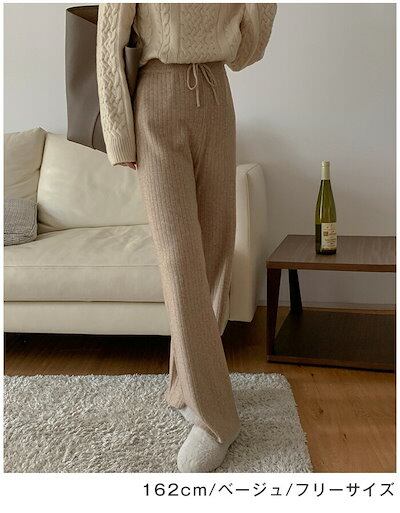 ニットパンツ リブニットワイドパンツ レディース 春 秋 冬 リブニット ワイドパンツ ガウチョ ウエストゴム ニット リブ ゆるパンツ リラックス 楽ちん ロングパンツ フレアパンツ ワンマイルウェ | KAGEYAMA-SECOND