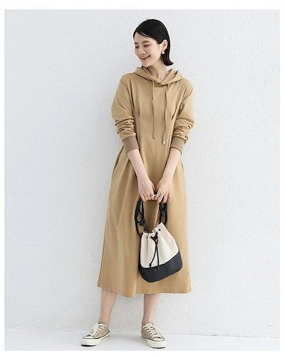 ワンピース レディース 秋 春 長袖パーカーワンピース 薄手フレア Aライン カシュクール オフィス 通勤 ストレッチ 伸縮性 ロング丈 ポケット付き ウエストタック ウエストゴム ゴム 20代 3