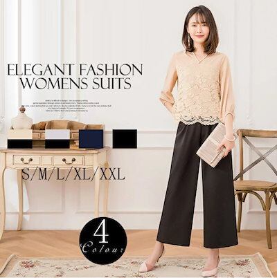 セットアップ きれいめ 春夏 レディース ワイドパンツ ガチョウパンツ パンツスーツ OL オフィス 通勤 事務服 エレガント 2点セット 上品 フォーマル 入学式 卒業式 30代40代50代 ママ