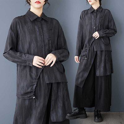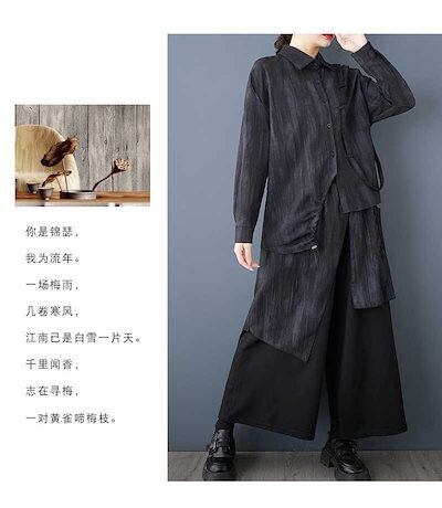 「ファットガール」 2025春 おしゃれ 上下セット シャツ+ワイドパンツ 大きいサイズ 体型カバー レディース セットアップ メガ割