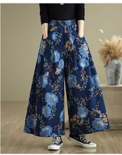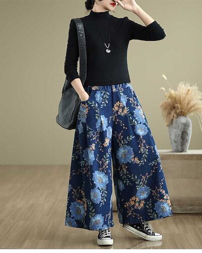 「ファットガール」 2025春 ワイドパンツ 花柄 デニムパンツ ゴム 大きいサイズ 体型カバー レディース スラックス フレア メガ割