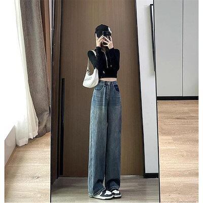 デニムパンツ ジーンズ レディース デニムワイドパンツ ハイウエストデニム レディースジーンズ ジーパン ボトムス ズボン ワイド ストレート 美脚 着痩せ