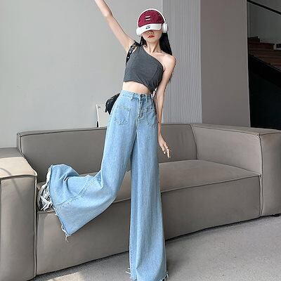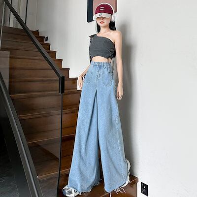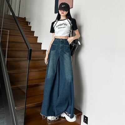 デニムボトムス ジーンズ ワイドパンツ レディース 港風 レトロおしゃれ 着痩せ ジーンズ ロングパンツ レディース服 デザイン感 ハイウェストゆったり 長ズボン ロングズボン ワイドパンツ | KAGEYAMA-SECOND