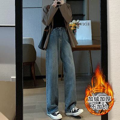 デニムボトムス レディース 秋冬 モップパンツ ジョガーパンツ ストレートパンツ 裏起毛 ワイドパンツ
