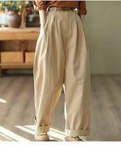 ワイドパンツ レディース 秋 きれいめ ワイドルーズ 綿 バギーパンツ イージーパンツ チノパン 美脚パンツ 長ズボン ウエストゴム ゆったり 通勤 大きいサイズ 体型カバー コットン 大人 ビジネス | KAGEYAMA-SECOND