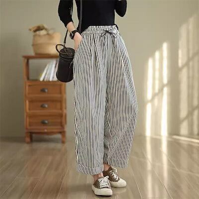 バルーンパンツ 大きいサイズ レディース コクーンパンツ サーカスパンツ ストライプ パンツ ストライプパンツ ワイドパンツ きれいめ 大きいサイズ ゆったり 体型カバー イージーパンツ 大人可愛い | KAGEYAMA-SECOND