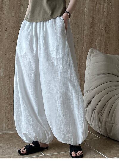 バルーンパンツ 夏 レディース パンツ 綿麻風 ワイドパンツ サーカスパンツ 薄手 柔らか ガウチョ ボトムス ウエストゴム バギーパンツ 大きいサイズ エスニック ナチュラル ゆったり 体型カバー | KAGEYAMA-SECOND