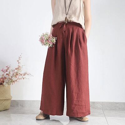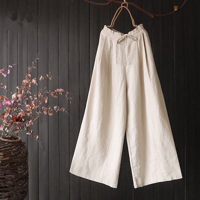 ワイドパンツ レディース 無地 夏 ロングパンツ ロング丈 パンツ ワイド 綿麻パンツ ウエストゴム ズボン 大きいサイズ 体型カバー ゆったり カジュアル シンプル 上品 薄手 着痩せ ナチュラル | KAGEYAMA-SECOND
