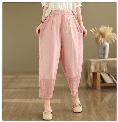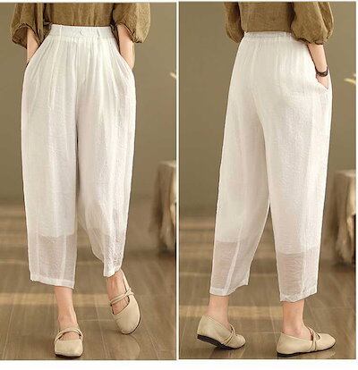 パンツ レディース ロングパンツ ワイド 無地 薄手 夏 涼しい 9分丈 ロング 綿麻風パンツ ズボン ボトムス 大きいサイズ 体型カバー 着回し ゆったり 部屋着 カジュアル ナチュラル 大人 可愛 | KAGEYAMA-SECOND