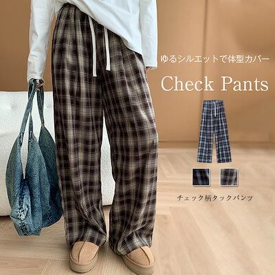 ワイドパンツ チェック柄 レディース ガウチョパンツ イージーパンツ ロング丈 パンツ ズボン ボトムス リラックスパンツ チェックパンツ 大きいサイズ ウエストゴム ゆったり 大きめ リラックス ス | KAGEYAMA-SECOND