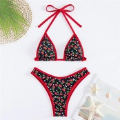 女性のセクシーなチェリーフローラルプリントビキニセット、トライアングルホルターストリング、ハイカット水着、ビーチウェア、2022 ビキニ Tシャツ T240619010000_01 | KAGEYAMA-SECOND