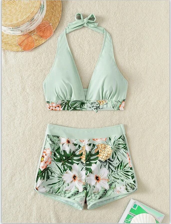 女性用ハイウエストレースアッププリント水着、無地パッチワーク水着、分割、フラットアングル、ヨーロッパ、米国状態2022 ビキニ Tシャツ T240619010433_18 | KAGEYAMA-SECOND