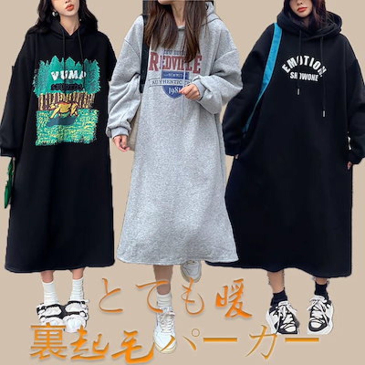【定番 20種類 裏起毛 パーカーワンピース 】【速やかに出荷!】【品質保証!】秋冬/ロング/長袖/韓国ファッションゆったりした/トップス/ルームウェア/大きいサイズ/レディース/アウター | KAGEYAMA-SECOND