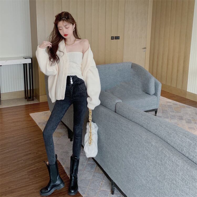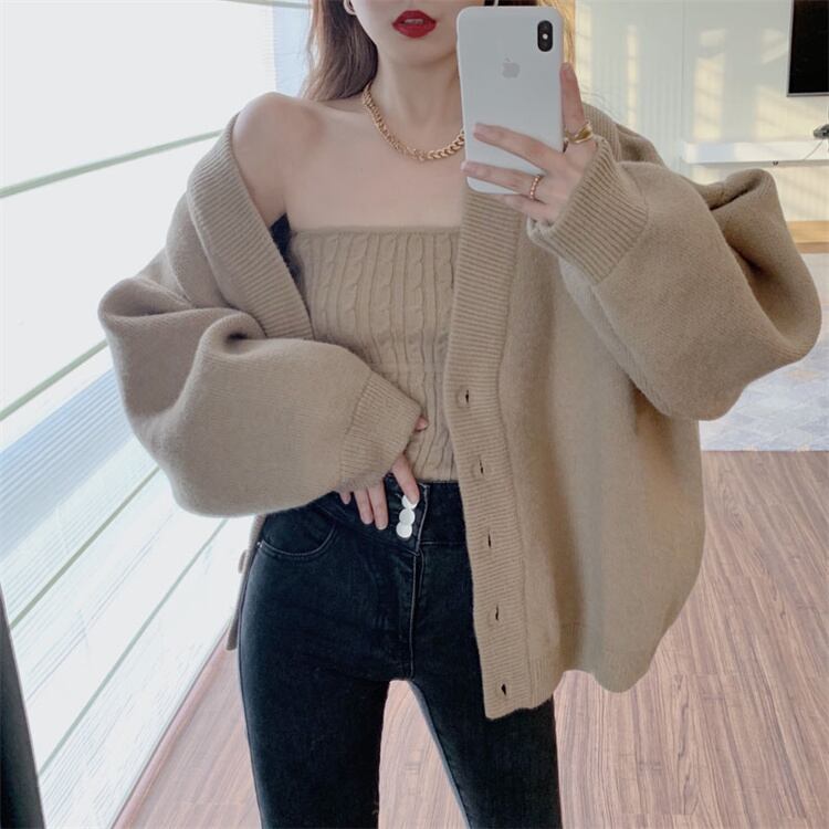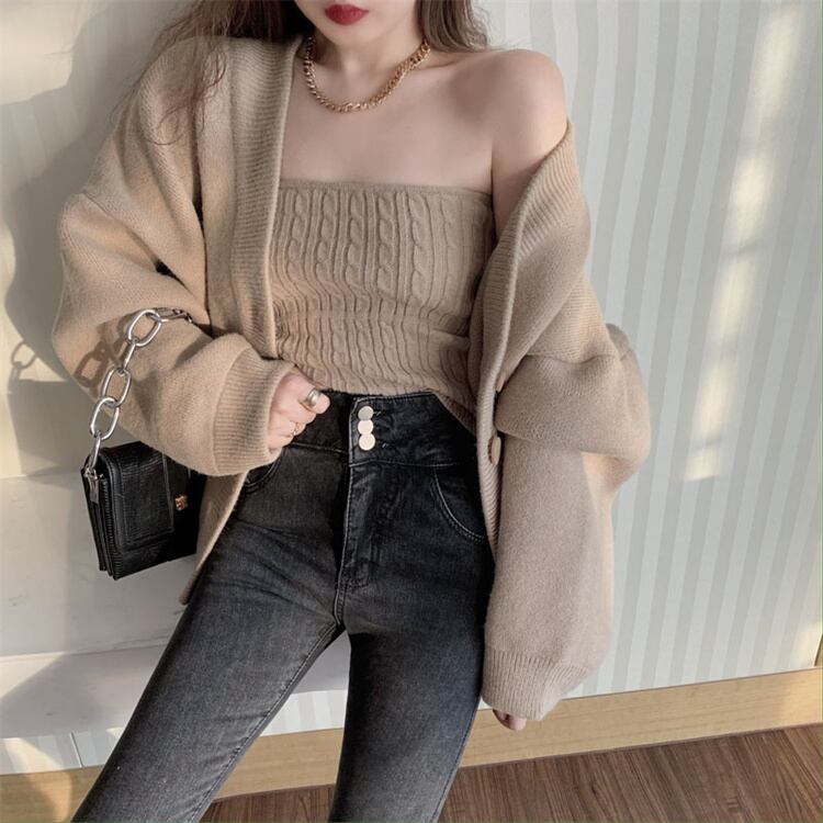 デイリーに使える セーター コート レディース チューブトップ ニットトップス カーディガン セット