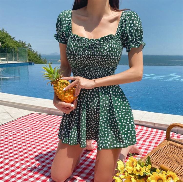 フローラル 半袖 コンサバティブ 小さい新鮮な 背透けて セクシー ワンピース水着