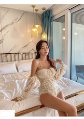 長袖 休暇 スパ スリム 水着 胸パッド付き レース セクシー