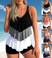 女性用の伸縮性のあるビキニセット,ビーチとプール用の水着,黒と白,フリルとエッジのデザイン,プリント,夏,新しいコレクションS 6XL 韓国系水着 セパレート水着 ワンピース水着 T240626153450_02 | KAGEYAMA-SECOND