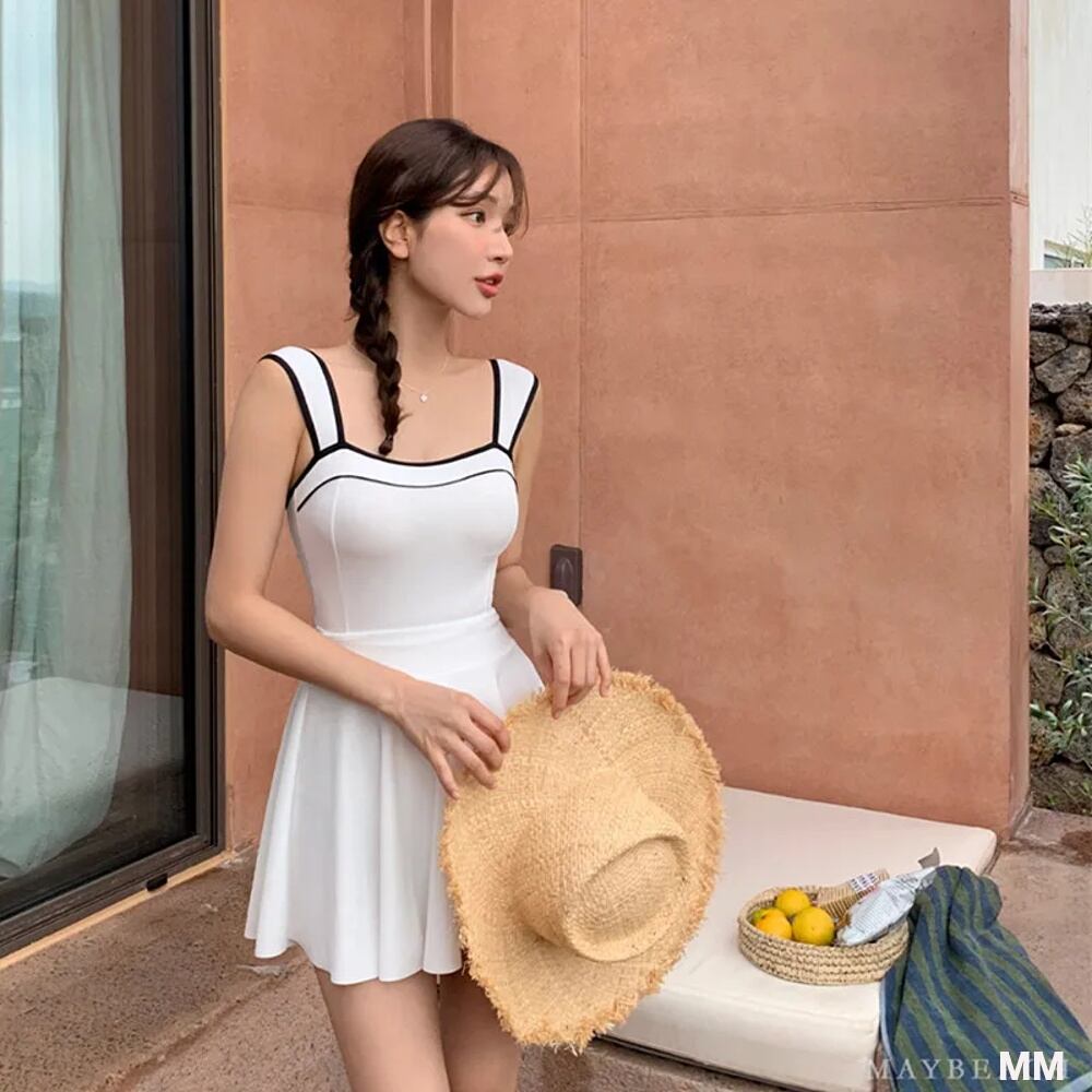 韓国の女性のためのスタイルの水着、ミニスカート、ハイウエスト、黒と白、ビーチと休暇のための1ピースの水着、ファッショナブル 韓国系水着 セパレート水着 ワンピース水着 T240626154228_01 | KAGEYAMA-SECOND