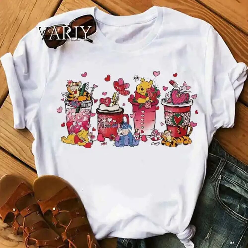 女性用半袖Tシャツ,ハロウィーンの服,漫画のプリント,winnieのプーフ,コーヒー,バレンタインデー ボトム ボトムス ズボン T240619190354_01