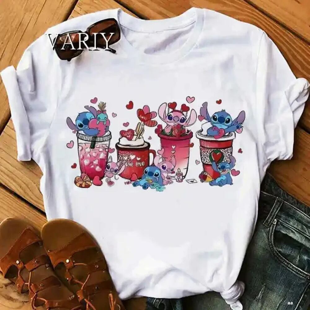 女性用半袖Tシャツ,ハロウィーンの服,漫画のプリント,winnieのプーフ,コーヒー,バレンタインデー ボトム ボトムス ズボン T240619190354_04