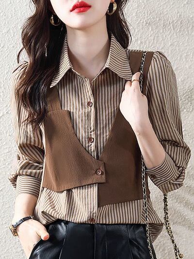 今っぽシアーシャツ レディース 2024新作 春 韓国ファッションストライプ柄 シャツ レディース フェイクレイヤード 長袖 通勤 20代 30代 40代シャツ レディース | KAGEYAMA-SECOND