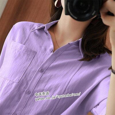 シャツ レディース ブラウス 春夏新作 半袖シャツ オシャレ 無地 トップス 韓国風 着痩せ カジュアル サマーシャツ ゆったり 大きい 気質 20代30代 通勤