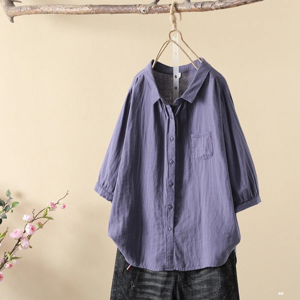 女性の夏の綿糸シャツ,半袖の白いブラウス,だぶだぶの女性の服 ボトム ボトムス ズボン T240619142008_02