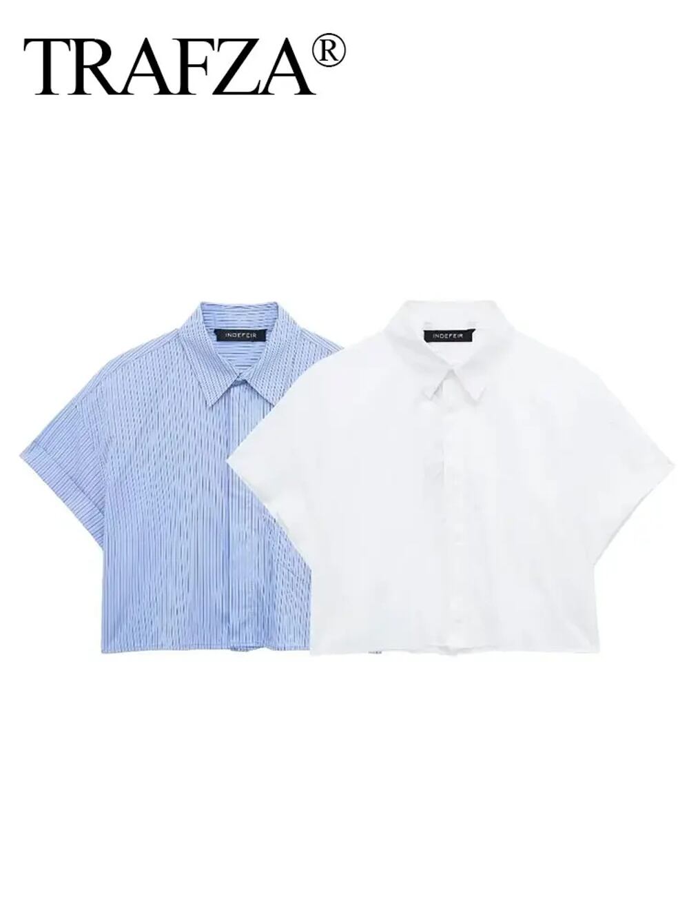 Trafza 女性用の青いストライプのクロップドブラウス,半袖ポロシャツ,エレガントなトップス,春と夏,ファッショナブル,2024 ボトム ボトムス ズボン T240619142112_01 | KAGEYAMA-SECOND