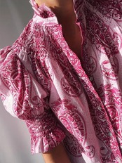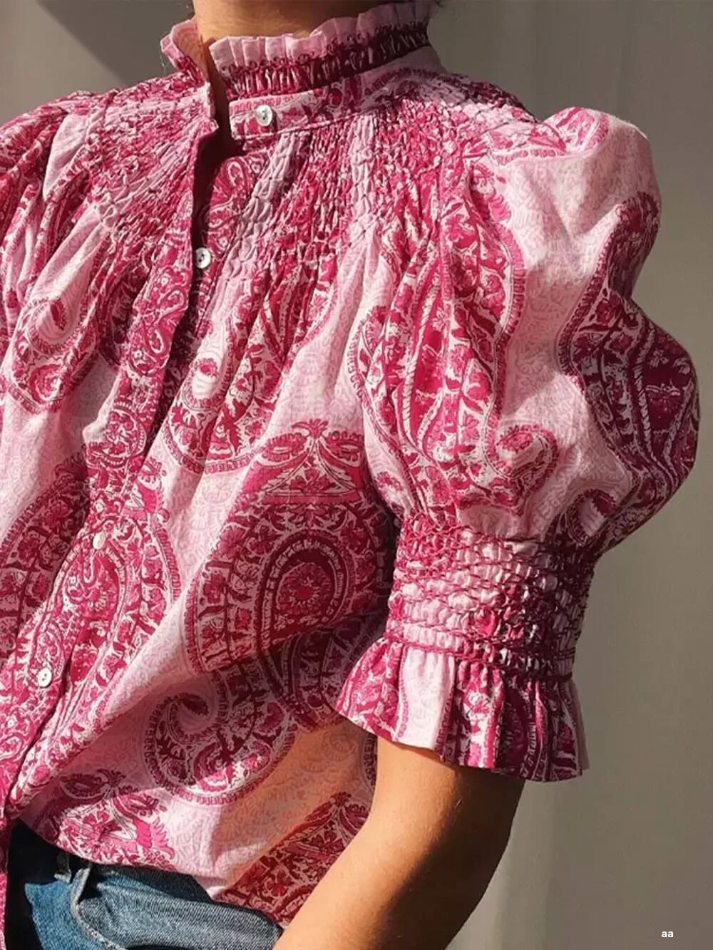 モデル番号:Standing Collar Printed Women's Pleated Blouse