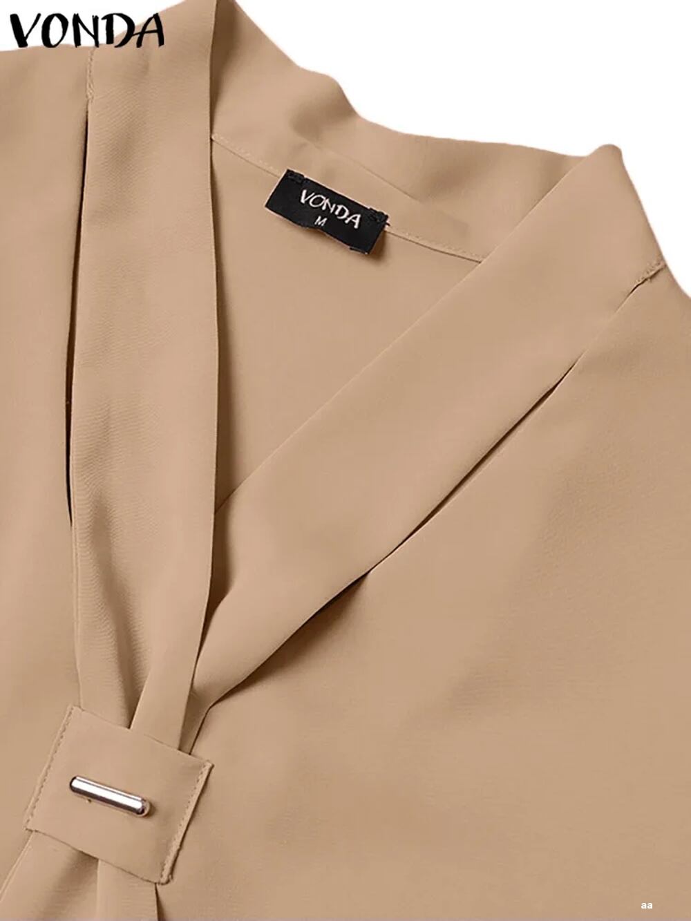 Vonda 女性用半袖シフォンブラウス、カジュアルトップス、ゆったりとしたネクタイシャツ、単色、夏のファッション、2022 ボトム ボトムス ズボン T240619142150_01 | KAGEYAMA-SECOND