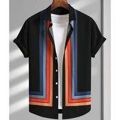 男性と女性のためのシンプルなストライプの3Dプリントシャツ,カジュアルなファッション,半袖,ボタン付きラペル,ストリートウェア,特大,ユニセックスの服 ボトム ボトムス ズボン T240619142223_11 | KAGEYAMA-SECOND