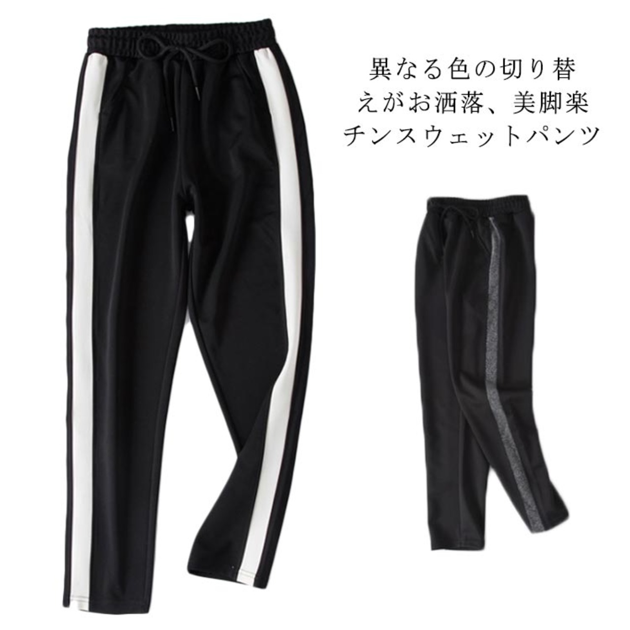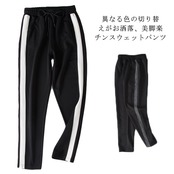 異なる色の切り替えがお洒落、美脚楽チンスウェットパンツ★ストリートウェア 韓国スタイル ボトム カーゴパンツ ワイドレッグ ヒップポップ ハイウエスト カジュアル ジョガーパンツ | KAGEYAMA-SECOND