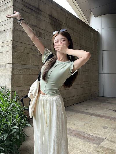 2024 春夏 甘い トップス Tシャツ ラウンドネック 3色展開丈 休日 ファッション タイト 半袖 スリムフィット丈短め ショート ショート へそ出し スリーブ 休日レディース 韓国 おしゃれ T | KAGEYAMA-SECOND
