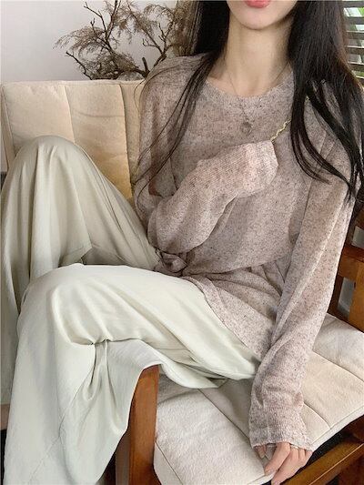 2024春夏 ニットトップス レディース長袖 韓国ファッション 可愛い ニット プルオーバー セクシー ニット ショート丈トップスおしゃれ 薄手透け感 クロシェ ニット ニッ