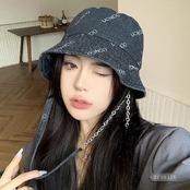 デニム ロゴ チェーンストラップ バケットハット 帽子 サファリハット アウトドア レジャー UV対策 紫外線対策 日焼け対策 韓国ストリート カジュアル メンズライク | KAGEYAMA-SECOND
