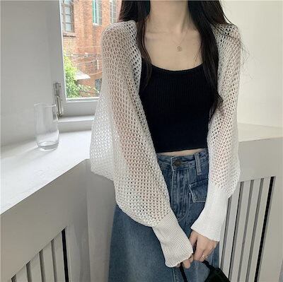 ニット カーディガン 長袖 サイズ ニット大人 トップス シルエット羽織り 雰囲気 カジュアル フェミニンファッションきれいめ フレンチドルマンスリーブメガ割夏 春 秋韓国 レディース | KAGEYAMA-SECOND