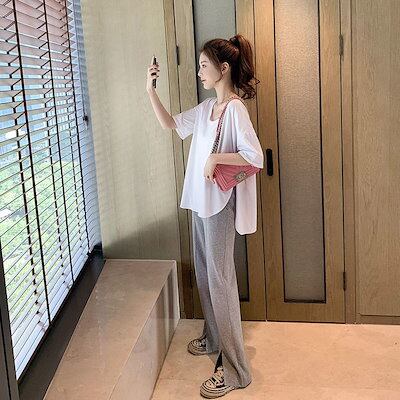 Tシャツカットソー 夏 ゆったり 大きいサイズ tシャツ 半袖 レディース イレギュラー着丈 スリット設計半袖 トップス 韓国ファッション 無地 百掛け Tシャツ カジュアル 怠惰な風 ロングTシャツ | KAGEYAMA-SECOND