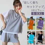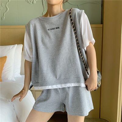 セットアップ スウェット夏 薄 2点セット セットアップ レディース 韓国ファッション 薄 スウェット上下セット 半袖 レディース 部屋着 スポーツウェア