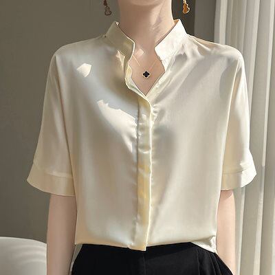 シアーシャツ 【上品】サテンブラウス レディース 上品 大人 無地 通勤半袖 Tシャツ 韓国ファッションシンプル 高級感アイスシルク 20代30代